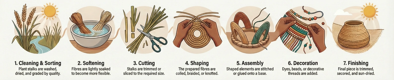 Wheat grass craft originates from rural farming communities where women repurposed post-harvest wheat stalks to create ritual objects, household décor, and toys. The craft later evolved into a structured livelihood practice supported by rural development programmes.